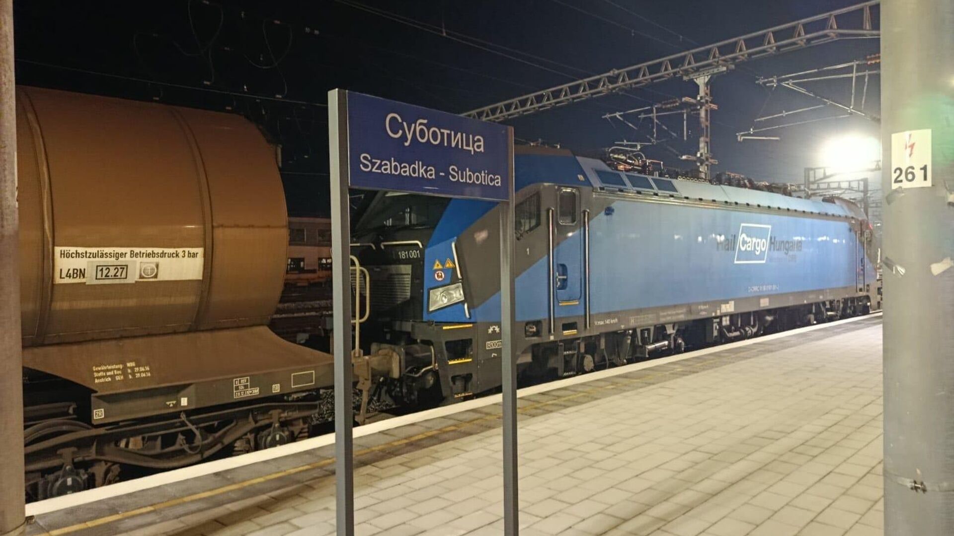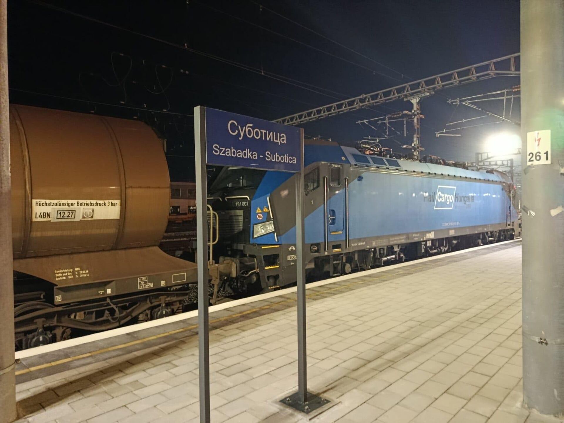 Теретна железничка композиција мађарског националног превозника у робном саобраћају „Раил Карго Хунгариа“, која је кренула из Мађарске и у саставу имала 20 цистерни, прешла је српско-мађарску државну границу и вечерас у 18.14 сати стигла у железничку станицу Суботица.
