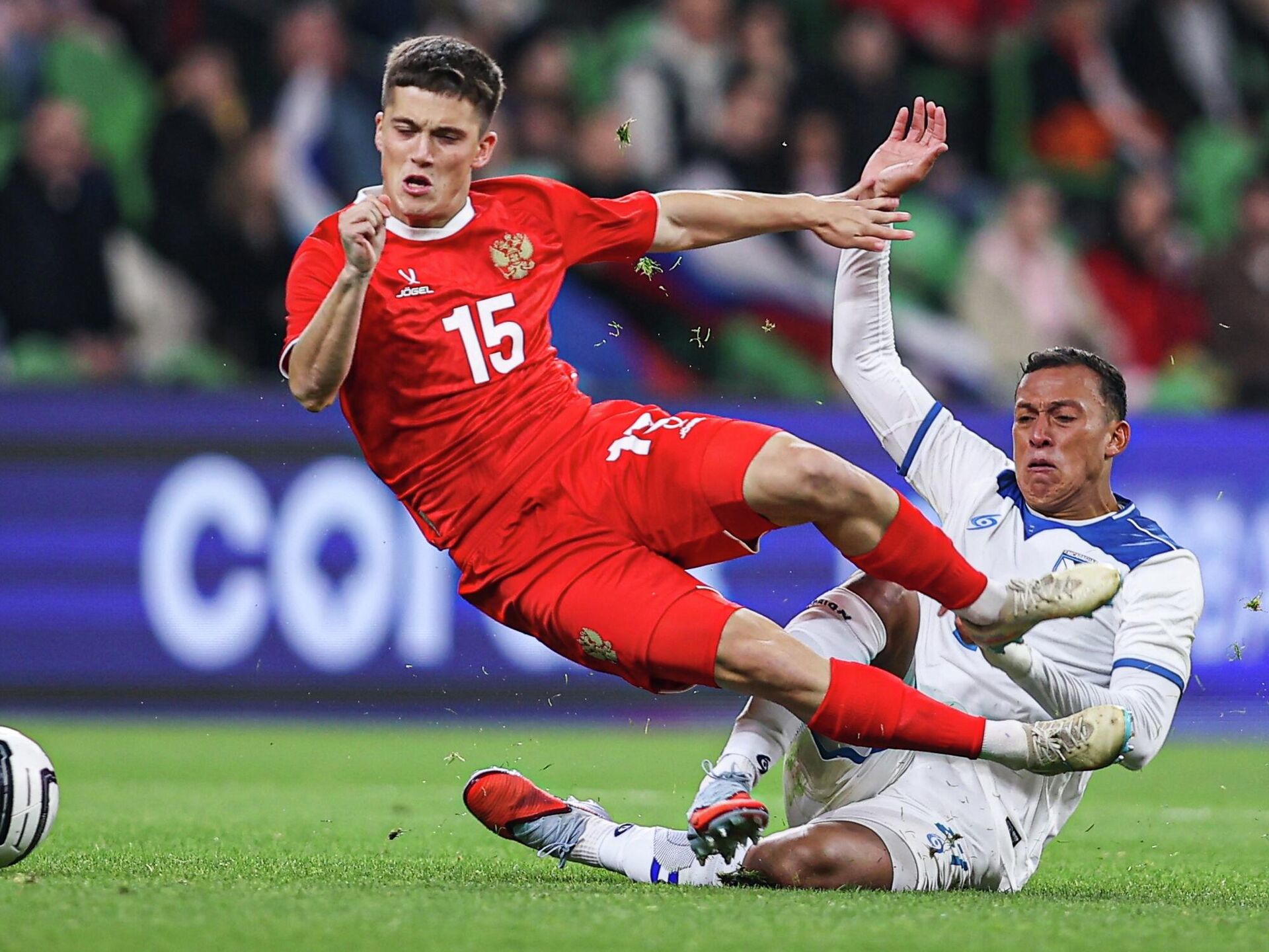 Гости су изједначили преко Оскара Асеведа у 16. минуту, али је Русија до краја првог полувремена поново стекла предност, пошто је Константин Тјукавин реализовао једанаестерац у надокнади времена.