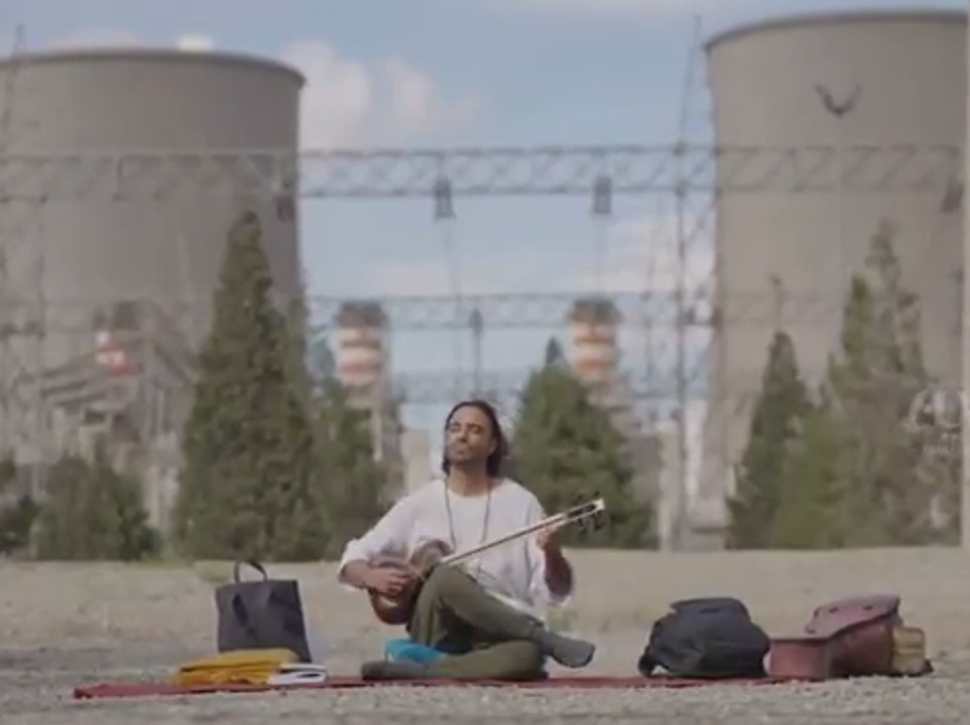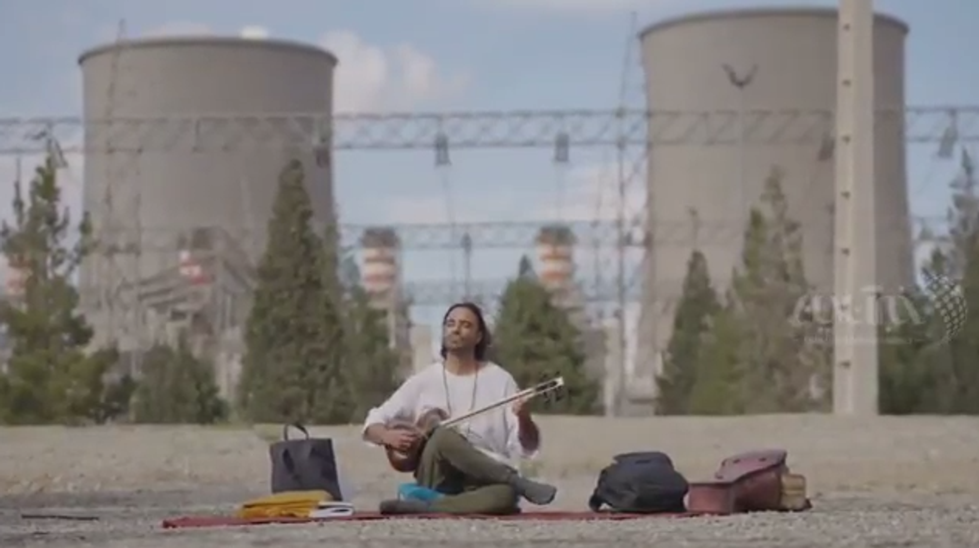 Ирански уметник Али Гамсари свира поред електрана пркосећи америчким претњама. 08.04.2026, Sputnik Србија