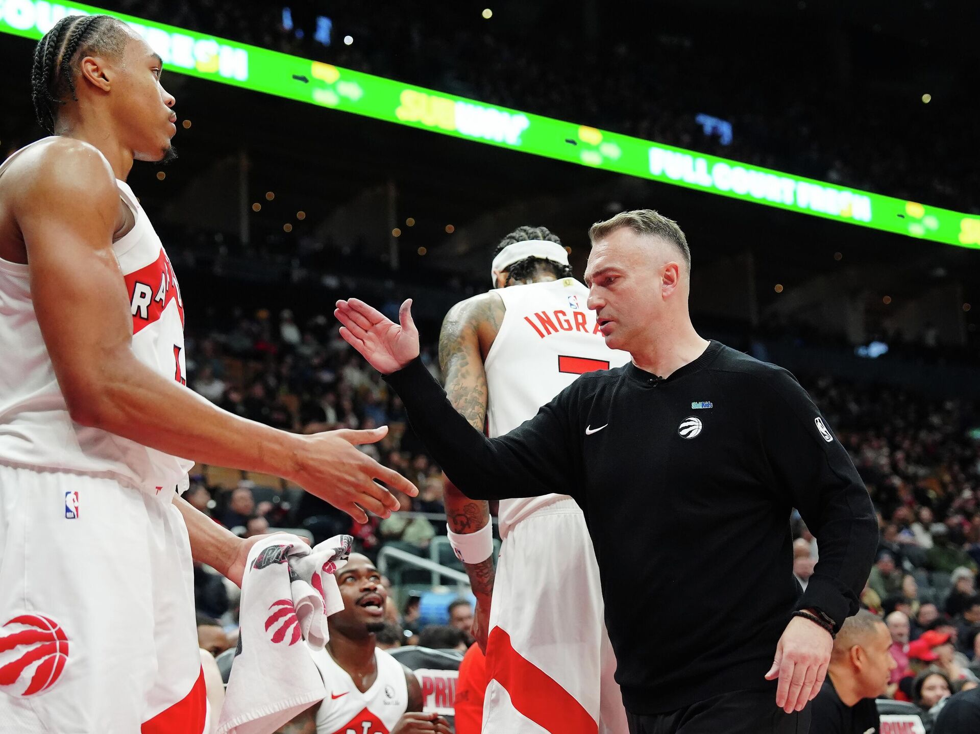 Торонто који игра фантастично ове сезоне под тренерском палицом Дарка Рајаковића добио је уводни квартал резултатом 32:26, да би до одласка на „велики одмор“ та предност прерасла у двоцифрену – 69:50.