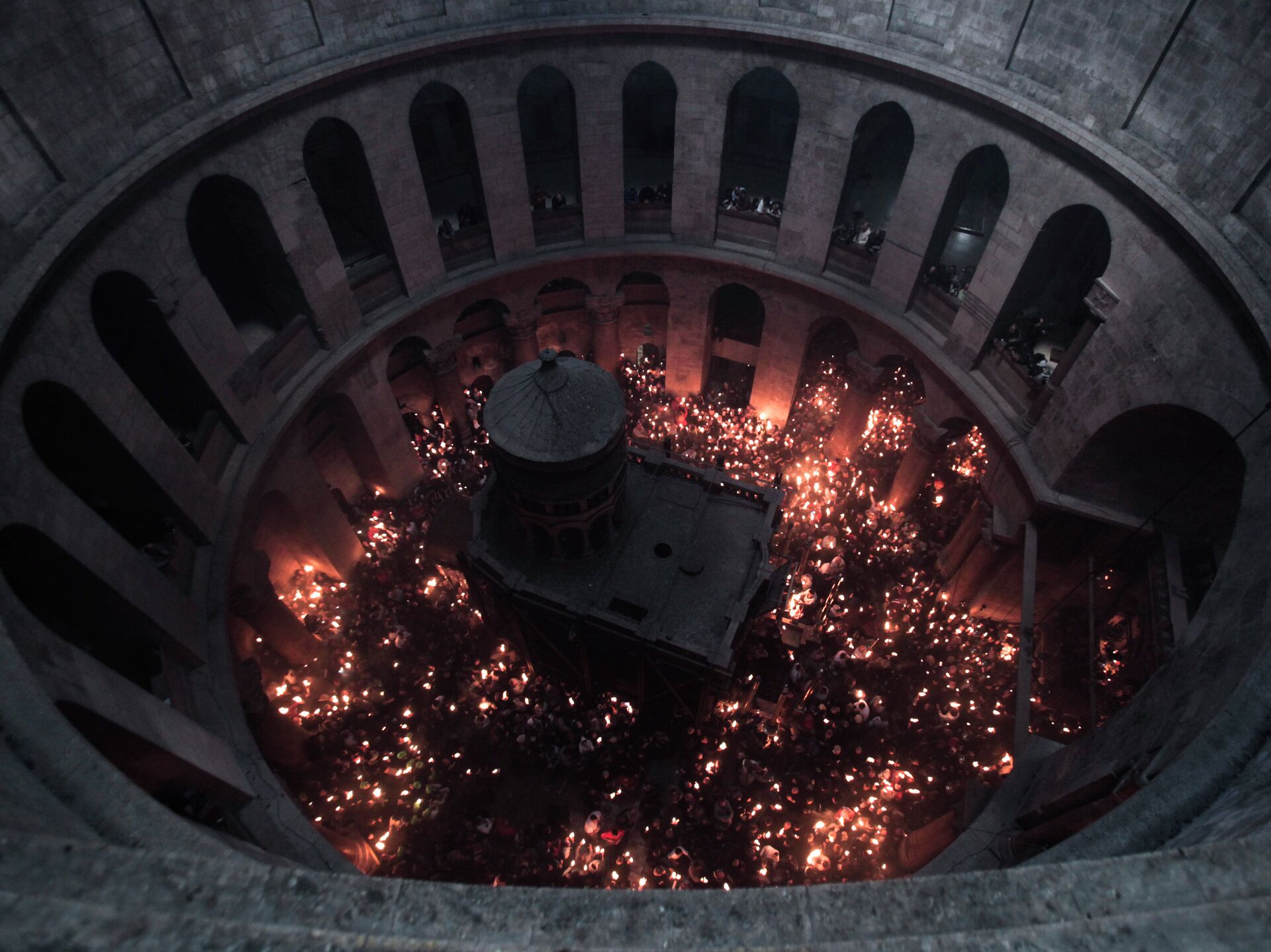 10:15 11.04.2026 (Освежено: 11:15 11.04.2026) Сваке године православни ходочасници из целог света окупљају се у источнојерусалимској цркви Христовог васкрсења уочи православног Ускрса. Верници се моле и пале бакље и свеће из пламена за који верују да је чудесно запаљен у Исусовом гробу у цркви.