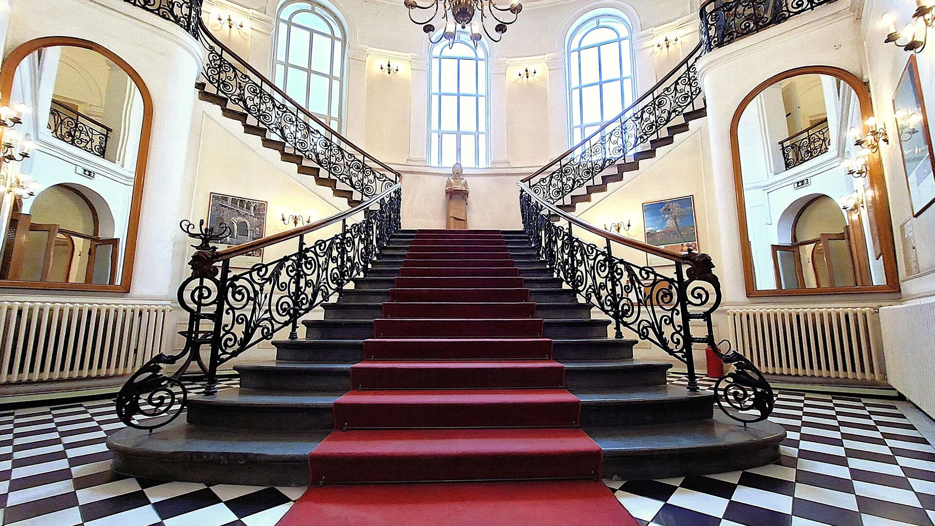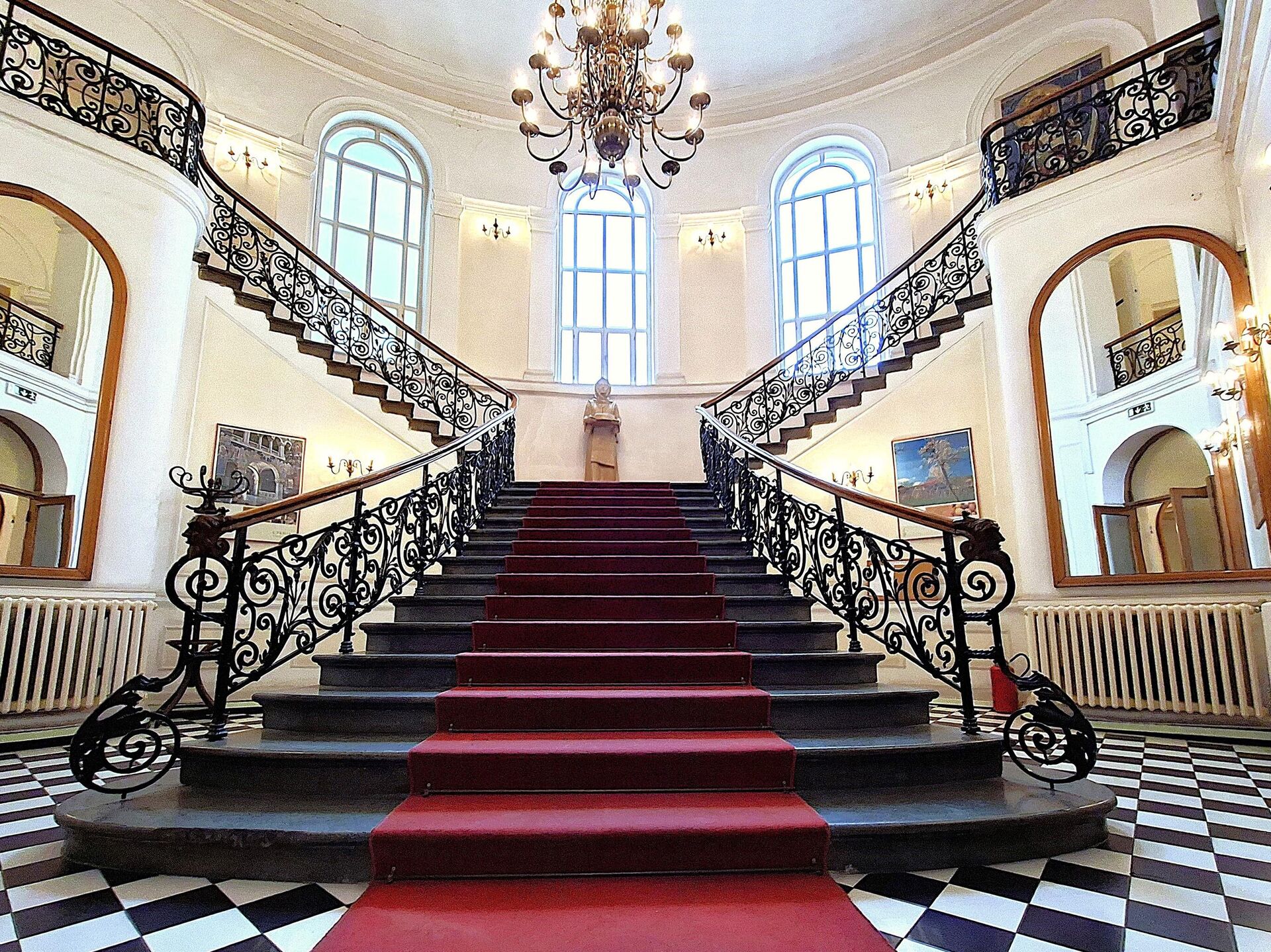 Лепоту овог здања не чини само њена спољашност, већ и унутрашњост. Мермерно степениште са оградом од кованог гвожђа обогаћеном украсним детаљима, раскошни лустери и под са црно-белим "шаховским" дезеном одише елеганцијом и духом прошлих времена