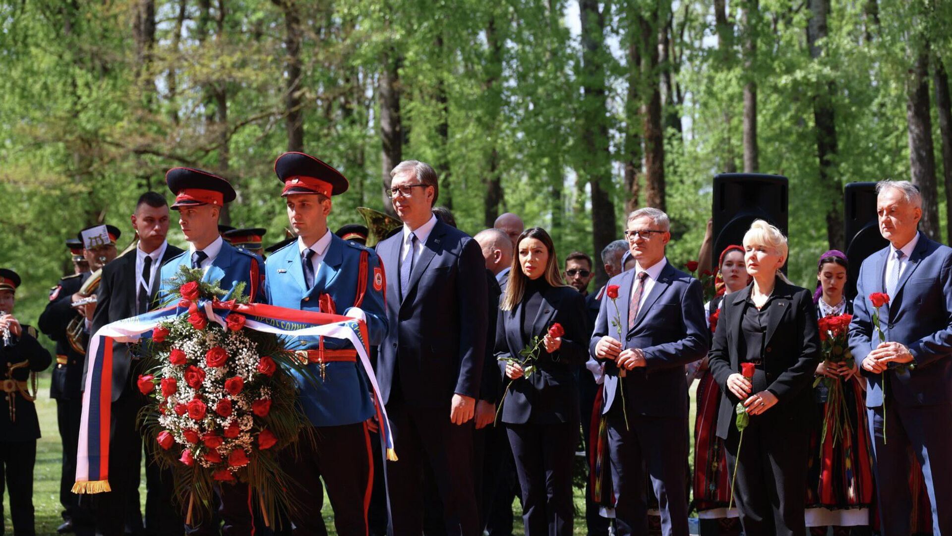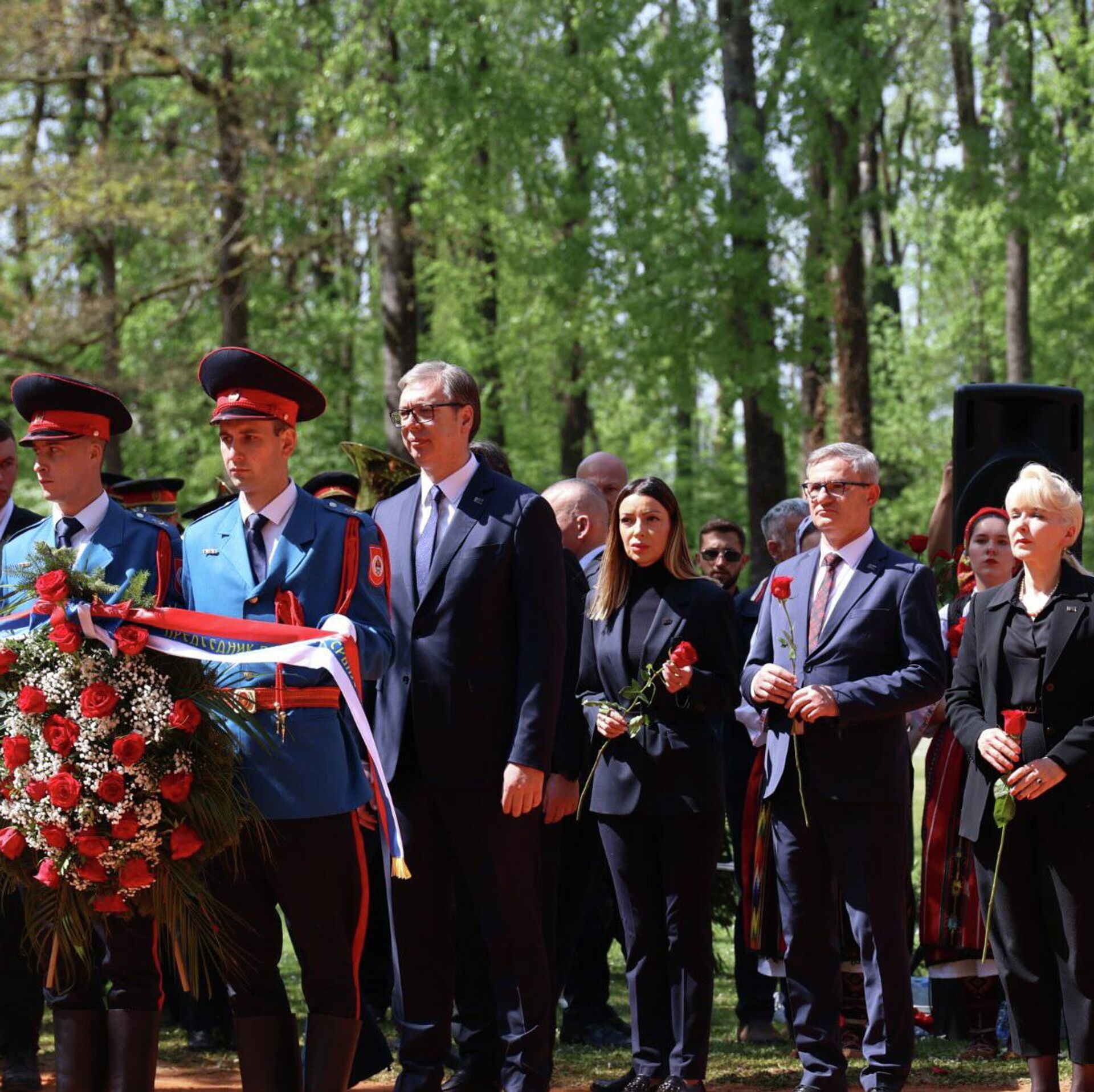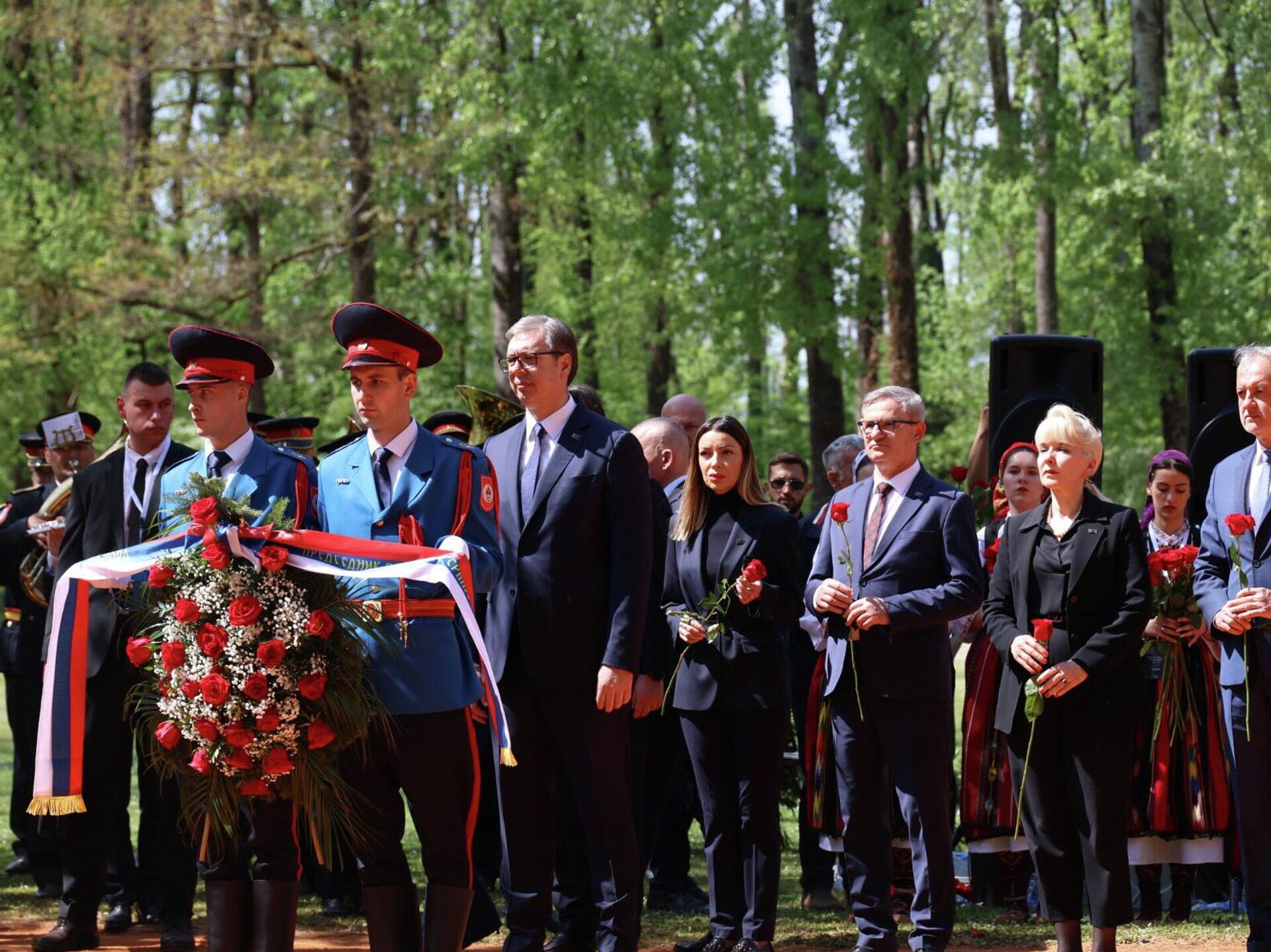 У Спомен-подручју Доња Градина положени су венци и цвеће на гробно поље "Тополе", а венац је испред делегације Србије положио председник Александар Вучић.