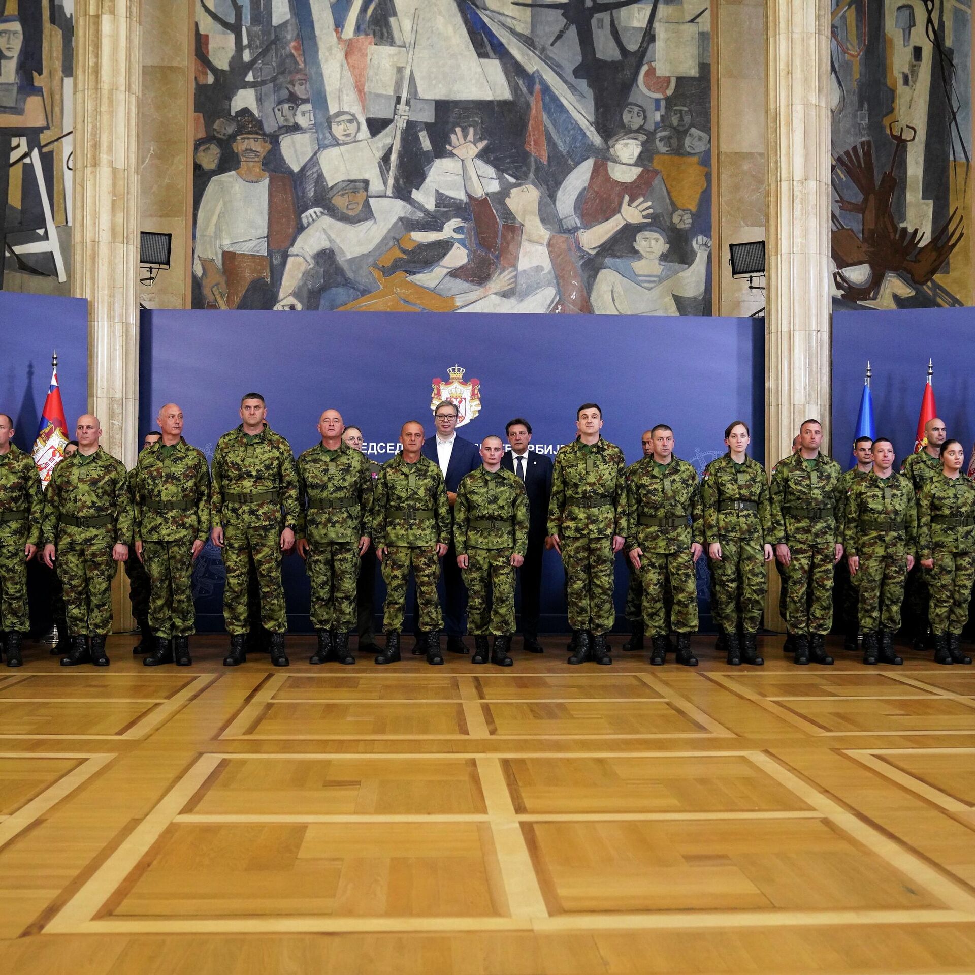 Војска Србије са председником Александром Вучићем - Sputnik Србија, 1920, 27.04.2026