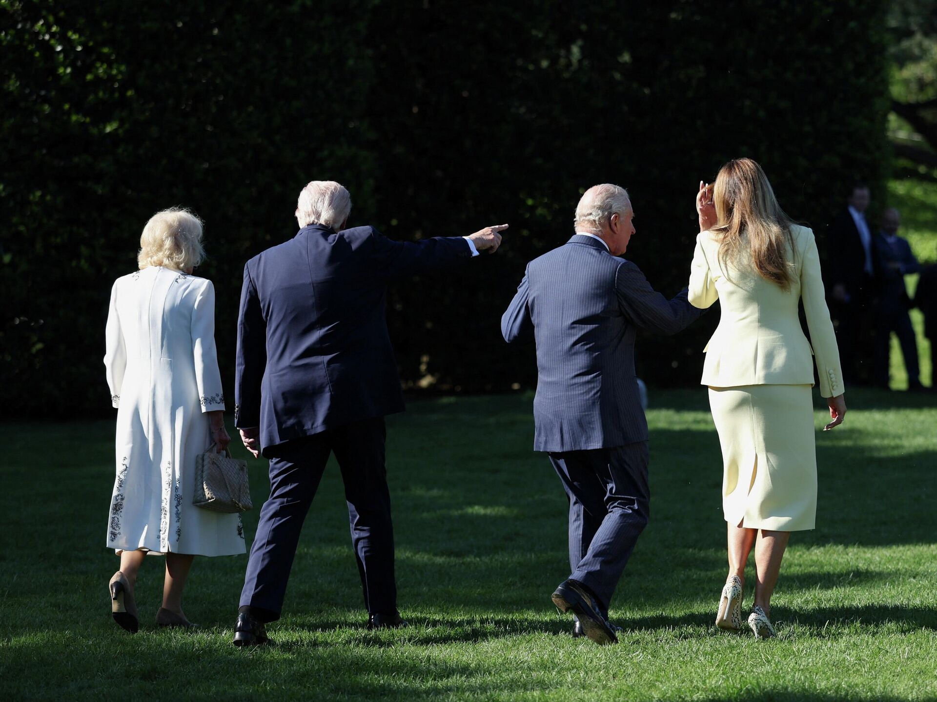 Истовремено, амерички лидер је наводно прекршио краљевски протокол већ у првим минутима сусрета са Чарлсом III, тапшући монарха по рамену, иако нико не би требало први да додирује члана краљевске породице.