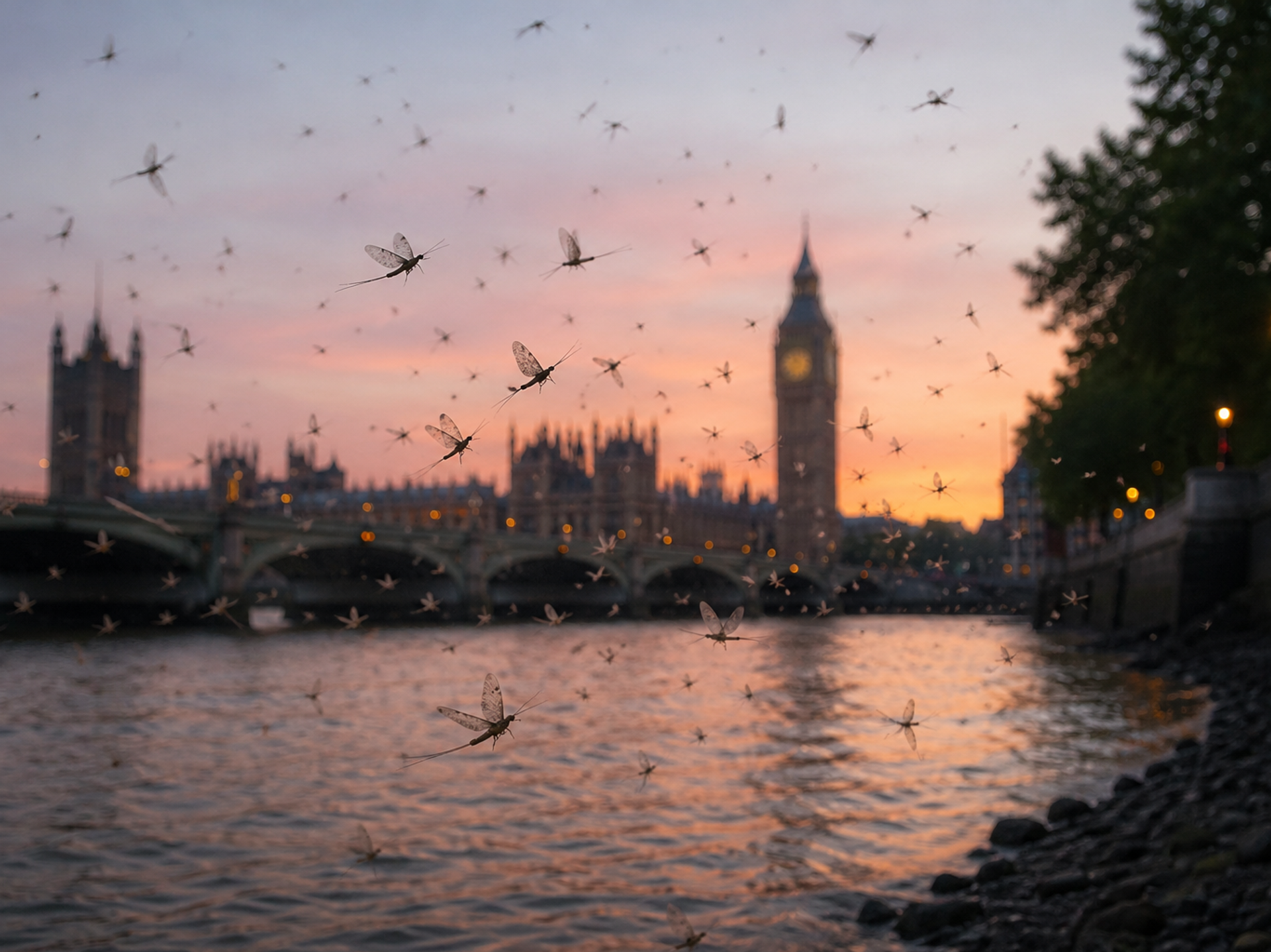 На обалама реке Темзе, током пролећних вечери, ројеви водене мушице изводе необичан плес стар стотинама милиона година, а научници сада верују да знају зашто.